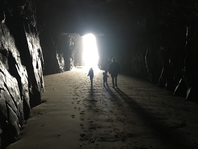 After the family headed home we decided we needed to get out and made a plan to visit Cathedral Caves despite the weather. The entrance fee is $5 per adult and $1 per school aged kid. Jackets on and away we went. 1km down through a bush track then 200m along the beach. The caves are only accessible at low tide.